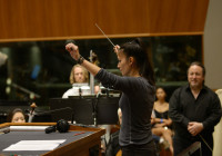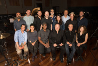 Pictured (L-R) at the BMI conducting workshop are (back row): BMI composer Sandro Morales Santoro, concertmaster Mark Robertson, BMI composer Rick Larrea, BMI’s Phillip Shrut, music editor Chris Ledesma, BMI’s Evelyn Rascon and Ray Yee, and BMI composers Christopher North and Danny Cocke. (Front row): BMI composers Fabrizio Mancinelli, Sherri Chung and Jermaine Stegall, BMI composer and conductor Lucas Richman,… View Photo