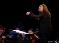 GRAMMY-winning BMI composer Nora Kroll-Rosenbaum conducts the 55-piece orchestra and 30-person choir during “The Women Who Score: Soundtracks Live” concert on August 19 in LA. View Photo