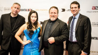 BMI affiliate Mark Robertson (left) and Noah Gladstone (right), co-founders of the Hollywood Chamber Orchestra with violin soloist Sarah Chang and BMI conductor Lucas Richman. View Photo