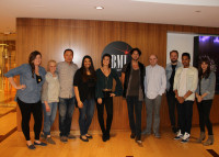 BMI’s Ashley Saunders, Barbara Cane, Ray Yee and Reema Iqbal, BMI songwriters Esmay and Max Luck, and BMI’s Phil Shrut, Justin Seiser, Cee Barrett and Jessa Gelt are all smiles after the duo treated the BMI team to a performance. View Photo