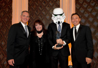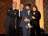(L-R) BMI President & CEO Mike O'Neill, BMI Vice President of Film & TV Relations Doreen Ringer Ross, composer Chad Fischer, and BMI Assistant Vice President, Film/TV Relations Ray Yee pose with the BMI Film and Television Award for 'Scandal' onstage at the 2016 BMI Film/TV Awards at the Beverly Wilshire Four Seasons Hotel on May 11, 2016 in Beverly… View Photo
