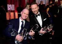 Composers Tom Holkenborg (L) and Brian Tyler pose with the BMI Film and Television Awards during the 2016 BMI Film/TV Awards at the Beverly Wilshire Four Seasons Hotel on May 11, 2016 in Beverly Hills, California. View Photo