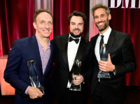 (L-R) Composers Mychael Danna, David Buckley and Rob Simonsen pose with the BMI Film and Television Awards during the 2016 BMI Film/TV Awards at the Beverly Wilshire Four Seasons Hotel on May 11, 2016 in Beverly Hills, California. View Photo