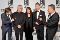 (L-R) Composers Atli Orvarsson and Mark Mothersbaugh, BMI Vice President of Film & TV Relations Doreen Ringer Ross, composer Brian Tyler, and BMI President & CEO Mike O'Neill attend the 2016 BMI Film/TV Awards at the Beverly Wilshire Four Seasons Hotel on May 11, 2016 in Beverly Hills, California. View Photo