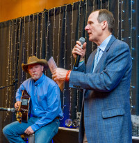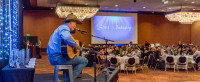 BMI’s Dan Spears introduces CMA award nominee Wynn Varble to the gathering of Alaska hoteliers. View Photo
