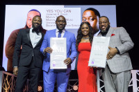Jarmone E. Davis and Marvin Sapp accept their award for “Yes You Can” as one of BMI’s Most Performed Songs of 2016. Also pictured Wardell Mallory and Catherine Brewton of BMI at the 2017 BMI Trailblazers of Gospel Music Honors at Rialto Center for the Arts on January 14, 2017 in Atlanta, Georgia. View Photo