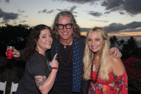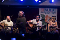 An audience member brought up by Ed Roland joins the Collective Soul front man, Bennett Dean Lewis and Maren Morris onstage during the Maui Songwriters Festival Kick Off show. View Photo