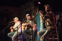 The Warren Brothers, Rhett Akins and Bob DiPiero play a round together onstage at 3rd and Lindsley. View Photo