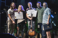 BMI’s Leslie Roberts, Mason Hunter and Jody Williams present Million-Air Awards to the Warren Brothers at the Maui Arts and Cultural Center. View Photo