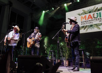 Ray Benson, Willie Nelson and Lukas Nelson perform at a private party during the Maui Songwriters Festival. View Photo