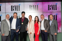 Al Andrews of Porter’s Call, Capitol CMG’s Brad O’Donnell, Songwriter of the Year Ed Cash, BMI’s Leslie Roberts, Capitol CMG’s Karrie Dawley, Capitol CMG’s Jimi Williams, and BMI’s Jody Williams gather on stage to celebrate the night’s big awards. View Photo