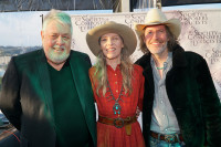 (L-R): SCL President Ashley Irwin gathers for a photo with BMI songwriters Gillian Welch and David Rawlings during the SCL’s annual reception for Oscar nominees. View Photo