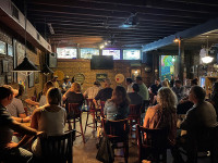 Every seat is taken at Alchemy as customers enjoy the performance by BMI songwriters Tyler Reeve and Paul McDonald. View Photo