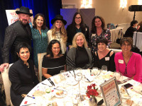 Pictured (L-R) before BMI songwriter Heidi Newfield’s performance at the MIW’s annual Lipstick and Lobster Dinner at the Rosewood Mansion @ Turtle Creek in Dallas are: (standing): guitarist Matt King, The Mesnik Group owner and MIW Spokesperson Denyse Mesnik, BMI songwriter Heidi Newfield, Geller Media International President Valerie Geller and BMI’s Jessica Frost. (seated): NRG Media President Mary Quass, Ohana… View Photo