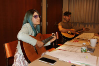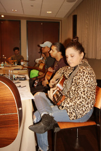 BMI’s Mary Russe and Nestor Martinez playing the guitar during BMI’s Guitar Workshop in New York. View Photo
