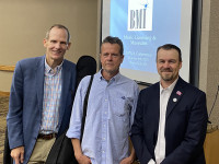 Pictured (L-R) after the BMI music licensing session at the 2021 MPMA conference in Sioux Falls are: BMI’s Dan Spears, BMI songwriter Jim McCormick, and MPMA Executive Director Justin Jakovac. View Photo