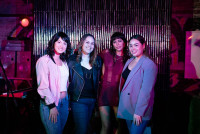 (L to R) BMI’s Natalie Stephenson, Lilibeth Patron and Beatriz Aguilar (far right) pose with Le Coco after her set. View Photo