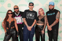 (L-R) Cris Chil, Dímelo Flow, Sky Rompiendo, Kuinvi, and Foreign Teck before BMI’s How I Wrote That Song: The Producers panel at Billboard Latin Music Week in Miami on Monday, September 26, 2022. View Photo