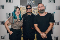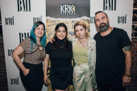 (L-R) BMI’s Mary Russe, Audioiko and BMI’s Jesus Gonzalez at BMI’s ‘Sonidos NYC’ showcase to kick off LAMC 2022 at the Drom in New York on July 5. View Photo