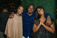 (L-R) Natalie Prospere with D’Mile and Paris Cole at the BMI Brilliance Dinner honoring D’Mile at Catch LA in West Hollywood, CA on June 25, 2022. Photo Credit JC Olivera for BMI. View Photo