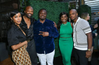 (L-R) BMI’s Associate Director, Creative, Los Angeles Christopher Wallace and AVP, Creative, Los Angeles Wardell Malloy gather with the evening’s honoree D’Mile, Reina Emile, BMI’s VP, Creative, Atlanta Catherine Brewton and Sr. Director, Creative, New York Omar Grant at the BMI Brilliance Dinner at Catch LA in West Hollywood, CA on June 25, 2022. View Photo