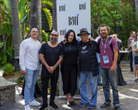 (L-R) Rafael Agustín, BMI’s Jesus Gonzalez and Alex Flores, co-founder of LALIFF Edward James Olmos and Luis Deveze at BMI’s “Hora Feliz” event during the Los Angeles Latino International Film Festival (LALIFF) on June 2, 2022, at The Hollywood Roosevelt hotel in Los Angeles, CA. View Photo