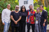(L-R) Rafael Agustín, BMI’s Jesus Gonzalez and Alex Flores, BMI composer David Murillo, Diana Cadavid and Bodie Olmos at BMI’s “Hora Feliz” event during the Los Angeles Latino International Film Festival (LALIFF) on June 2, 2022, at The Hollywood Roosevelt hotel in Los Angeles, CA. View Photo
