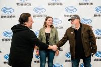 (L-R) Panelists John Murphy, Stephanie Economou and Kevin Kiner gather for a photo at WonderCon on April 1, 2022 at the Anaheim Convention Center in Anaheim, CA. View Photo
