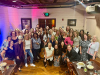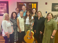 BMI songwriter Ella Langley with the BMI team after her performance at the 2023 RTTR dinner (L to R): BMI’s Jennifer Jones, Jessica Frost, Josh Lagersen, Leslie Roberts and Dan Spears, BMI songwriter Ella Langley, BMI’s MaryAnn Keen, Audrey Eller and Sarah Brandon. View Photo