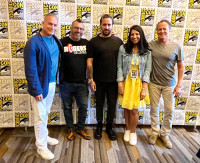 (L-R) Ray Costa, Chris Lennertz, Bobby Krilc, BMI’s Reema Iqbal, and David Russo gather for a photo before the 9th annual “Musical Anatomy of a Superhero” panel at Comic-Con on Thursday, July 20, 2023 in San Diego, CA. View Photo
