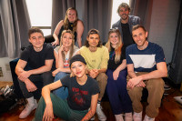 [Front] Grace VanderWaal, [Center from left] Lucas Sim, BMI’s Samantha Cox, Andrew Maury, Heather Sommer, Danny Ross, [Back from left] BMI’s Katie Kilgallen and Tim Pattison attend BMI Sessions at Anti Social Camp at Invite Only Studios on June 14, 2023. View Photo