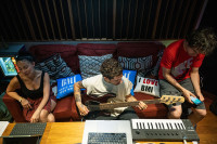 Richie Quake, Stalking Gia and Dan Edinberg attend BMI Sessions at Anti Social Camp at Invite Only Studios on June 14, 2023. View Photo