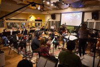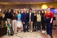 Students alongside BMI composer Mychael Danna during BMI Day at Berklee College of Music on October 21, 2024, in Boston, Massachusetts. View Photo