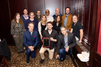 Photo L-R: BMI’s Mason Hunter, Ryan Larkins (BMI), Kelly Archer (BMI), Rhett Akins (BMI), Studio Bank’s Kari Barnhart, Studio Bank’s Ron Cox, Studio Bank’s Eunice Hernandez and Studio Bank’s Aaron Dorn pose to celebrate the writer’s round at BMI Nashville. View Photo