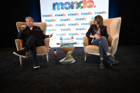 Loyola’s Hilton-Baldridge Eminent Scholar/Chair in Music Industry Studies, Jonathan McHugh and BMI’s VP Film, TV and Visual Media Tracy McKnight on stage at MONDO.NYC held at Arlo Williamsburg Hotel on October 17, 2024. View Photo