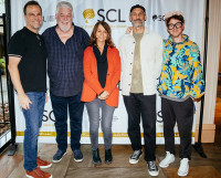 (L to R)- Carlos Rafael Rivera, SCL’s Ashley Irwin, BMI’s VP Film, TV & Visual Media Tracy McKnight, Rob Simonsen and Ryan Lott of Son Lux at Composer Conversations Presented by BMI and SCL at BMI’s Nashville office on September 27, 2024. View Photo