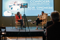 BMI’s VP, Film, TV & Visual Media Tracy McKnight with Rob Simonsen on stage during Composer Conversations Presented by BMI and SCL held at BMI’s Nashville office on September 27, 2024. View Photo