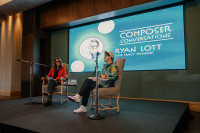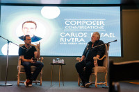 Composer Carlos Rafael Rivera on stage with SCL’s Ashley Irwin for Composer Conversations presented by BMI and SCL at BMI’s Nashville office on September 27, 2024. View Photo