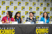 (L-R) “The Character of Music: The Art of Scoring for Animation” panelists Sean Kiner, Deana Kiner, Alex Seaver, and Sherri Chung during Comic-Con 2024 at the San Diego Convention Center on Sunday, July 28. View Photo