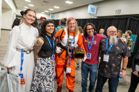 The Kiners pose for photos with fans after “The Character of Music: The Art of Scoring for Animation” panel during Comic-Con 2024 at the San Diego Convention Center on Sunday, July 28. View Photo