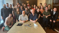 Patrick Cook, Senior Director of Musical Theatre, and Frederick Freyer, Workshop Administrator, gather with members of the BMI Lehman Engel Musical Theater Workshop’s annual “Spotlight” on June 6th at BMI’s headquarters in New York City. View Photo