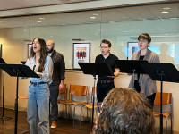 Cailen Fu, Noah Weisbart, Connor Marsh and Andrea J. Love perform at the BMI Lehman Engel Musical Theater Workshop’s annual “Spotlight” on June 6th at BMI’s headquarters in New York City. View Photo