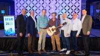 BMI artist/songwriter Lainey Wilson receives a BMI No. 1 custom Taylor 210e DLX guitar for her hit “Watermelon Moonshine.” View Photo