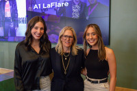 The Catch Up’s Michaela Baker, BMI’s Leslie Roberts, and The Catch Up’s Claire Karliak reunite in BMI Nashville’s lobby, sponsored by Studio Bank and ONErpm. View Photo