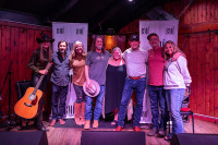 Bri Bagwell (BMI), Owen Temple (BMI), Courtney Patton (BMI), Walt Wilkins (BMI), BMI’s Kristen Townsend, BMI’s Mitch Ballard, Mike McClure (BMI), and Tina Wilkins (BMI) pose together in celebration at BMI’s Saxon Songwriter Series. View Photo