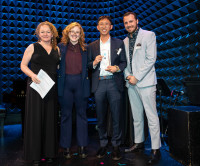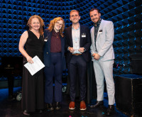 Sophia Gripari (songwriter), BMI’s Anu Gantumur, Julia Miller (Chosen Music) and Dwayne Stewart (Lionbear Music Group) at BMI London’s holiday mixer. View Photo