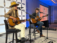 BMI songwriter Catie Offerman and her guitarist Max Sadler performing at the Media Financial Management Conference in Arlington, VA. View Photo