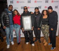 BMI’s Torri Rodney and Catherine Brewton, BMI Legends of ATL Award recipient Polow da Don and BMI’s Byron Wright, Morgan Edwards and Reggie Stewart attend BMI Know Them Now X Berklee Ones to Watch at Vinyl at Center Stage in Atlanta, GA on January 15, 2026. View Photo