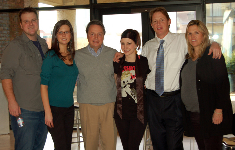 Pictured after Atlantic recording artist Jesse Lee’s performance at BMI’s Music Row offices February 9 are guitarist Matt McAtee, BMI’s Beth Mason and Jody Williams, and Jesse Lee, with BMI’s Clay Bradley and Leslie Roberts. (Photo by Susanne Hines)