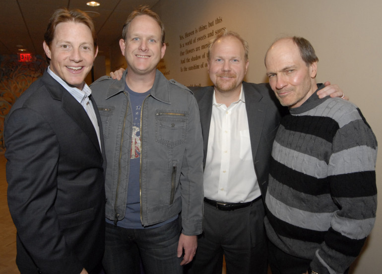 Pictured at the party celebrating chart-topper “Don’t” on Tuesday, February 24 at BMI’s Music Row offices are BMI’s Clay Bradley, BMI co-writer Jim Beavers, Sony ATV’s Troy Tomlinson, and legendary BMI songwriter Bobby Braddock. (Photo by Kay Williams)